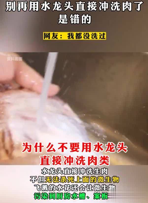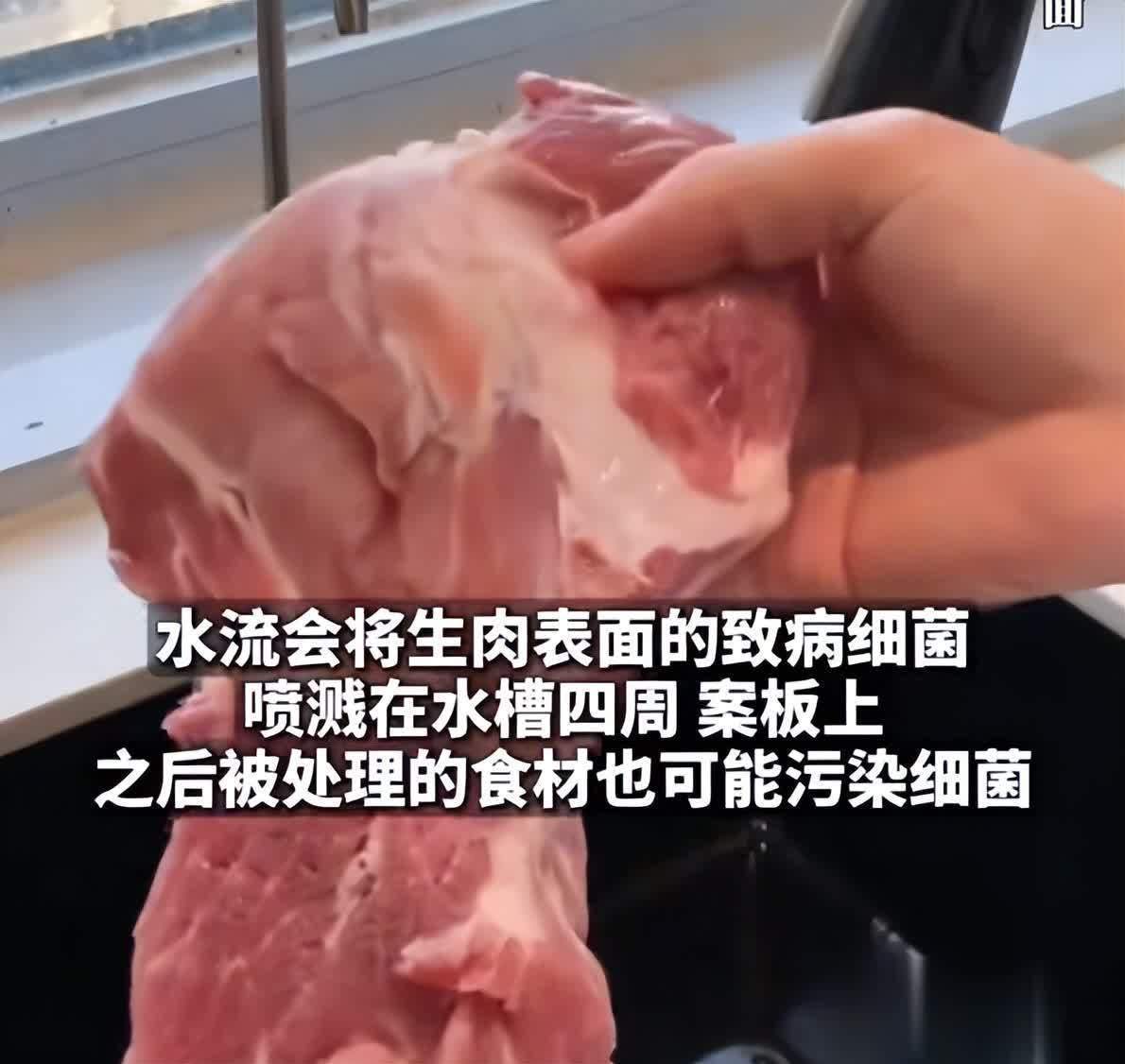 很多人在处理生肉的时候都是直接放在水龙头下冲洗,觉得用流水来清洁生肉表面上的血水和杂质会更干净。